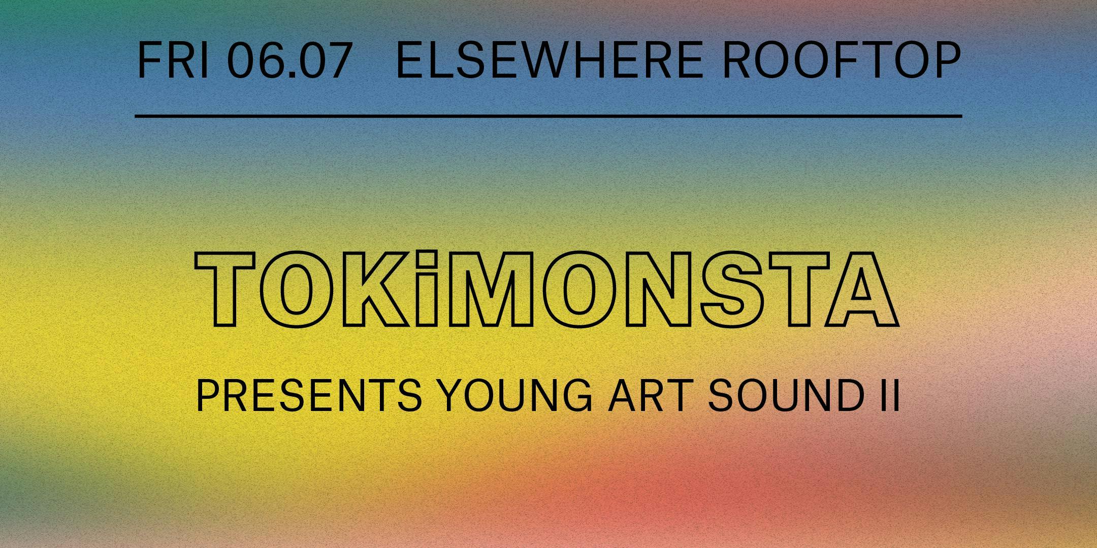 ☼ PerformancesTOKiMONSTA Presents Young Art Sound II w/└ TOKiMONSTA└└ Rosehardt└└└ Bad TunerDoors: 5PMPerformances: 5PM - 10PMRoof deck closes at: 4AMLimited tickets available at the door. Space permitting.In an effort to discourage scalpers and give more real fans the opportunity to come to our events, Elsewhere operates an official venue ticket exchange, powered by Lyte. If you purchased a ticket but can no longer use it, please consider putting it back on the exchange for a full refund, allowing another fan to attend.Click here to head to the Lyte Ticket Exchange.stick around for A-Trak, Like That Records etc... tickets will be available downstairs on the ground floor. there’s always lots else to explore besides the rooftop! most nights are multi-room celebrations, featuring a dynamic lineup of local and international talent in the hall and zone one. if you haven’t noticed already, our loft tucked into the 2nd floor now has its own dj booth and hosts free parties throughout the week. make sure to check our calendar at www.elsewherebrooklyn.com/events to see what else is happening at elsewhere the night of your visit!----☼ About Elsewhere RooftopElsewhere Rooftop is a seasonal large outdoor bar and events space, offering a signature frozen drink menu, shows & parties, sunset DJ sessions, food pop-ups, film screenings, art happenings, and much more all summer. Full calendar at https://bit.ly/2UMjRb3☼ Hours*The Rooftop usually opens at 6PM Monday through Friday and 2PM Saturday & Sunday, but is only open when the following events are happening: https://bit.ly/2UMjRb3 — please do make sure to check the rooftop calendar before stopping by! ☼ FoodFood is provided every Friday through Sunday this season by our good friends at Holy Ground BBQ, Brooklyn's tastiest BBQ pop-up. You can view the full menu here: https://bit.ly/2WHCB8J☼ Rain or Shine PolicyAll shows and events on the Rooftop are rain or shine! If the weather prevents us from carrying on, we will update customers via our website, Facebook, Instagram, Twitter, Eventbrite and Resident Advisor.☼ Safer Space PolicyELSEWHERE MAINTAINS A STRICT ZERO TOLERANCE POLICY FOR HARASSMENTElsewhere is intended to be a safe space to enjoy music, art, expression, and free play. Our staff are trained to remove individuals engaging in any form of sexual harassment, acts of aggression (including leering), racism, misogyny, transphobia, homophobia, religious bigotry, or hatred and discrimination of any kind.If you see or experience any unwanted attention, contact, bullying, harassment, or behavior of any kind that makes you uncomfortable, please speak out and notify our staff immediately.Please read our full policy at: https://bit.ly/2VxByad