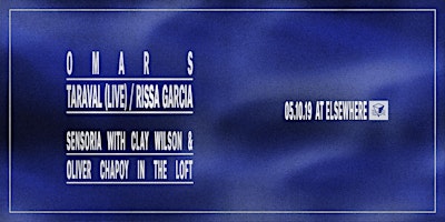 Omar S, Taraval (Live), Rissa Garcia, Sensoria w/ Clay Wilson & Oliver Chapoy @ Elsewhere (Hall)