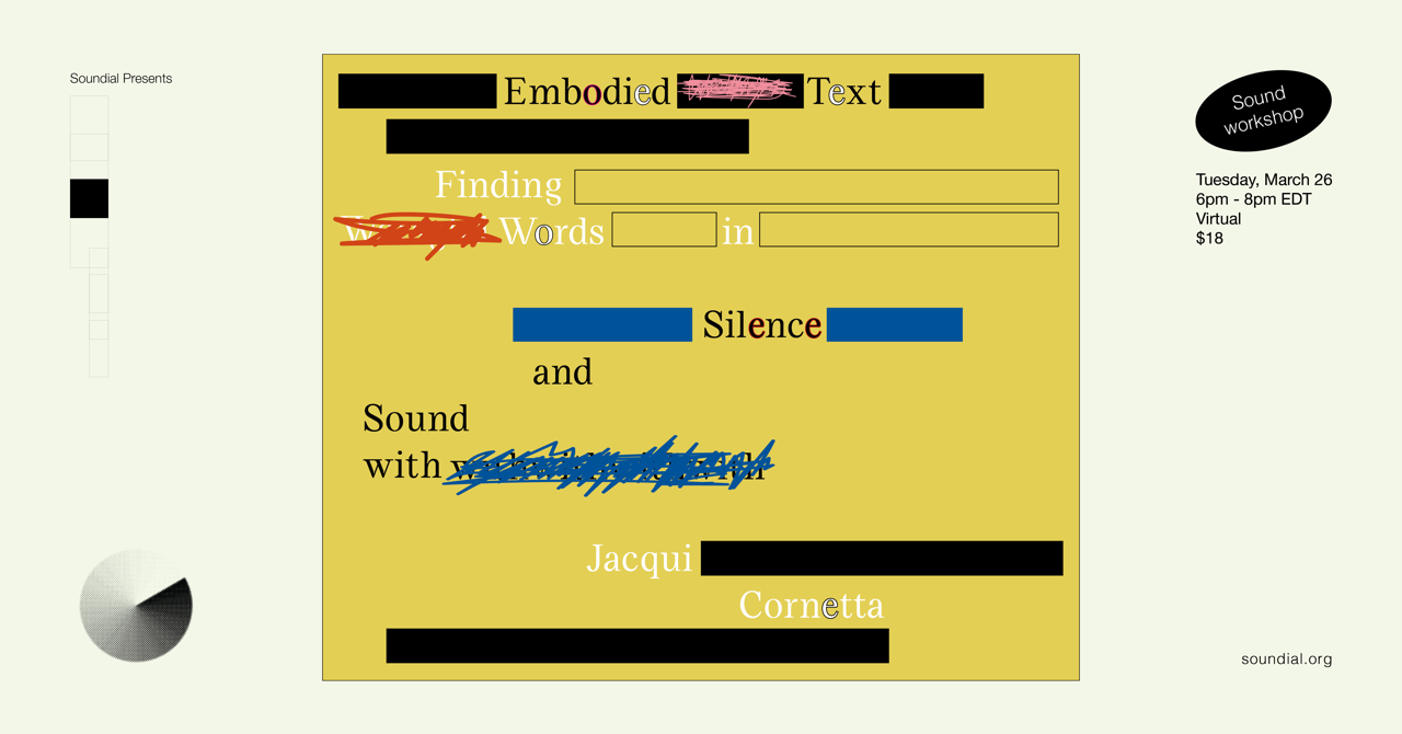 Through automatic writing, erasures (or ”thickening”) of found texts, and improvisation exercises, we'll explore intuitive ways to integrate poetry and sound. By the end of the workshop, participants will produce a short piece or sound collage inspired by either the freewrite or the erasure text, incorporating these textual fragments as ekphrastic elements within their compositions.