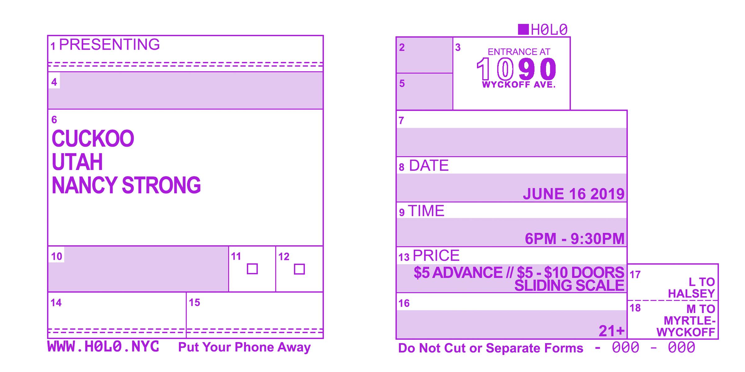 FULL LINE-UP: CUCKOO, UTAH, NANCY STRONG