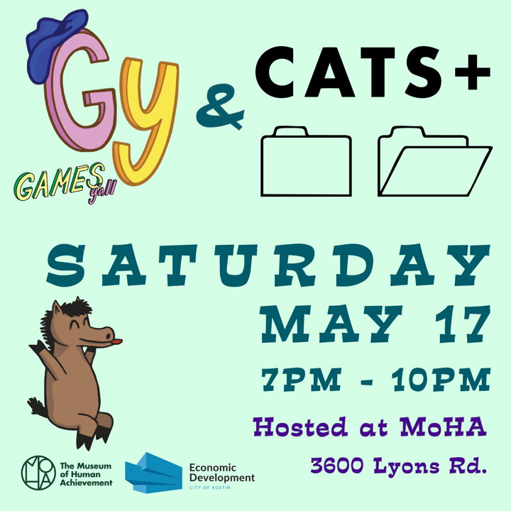 We'll have a fresh lineup of indie games to check out, folks to meet, and we'll be doing it at the same time as MoHA's CATS+ showcase, so there will be even more art to check out!