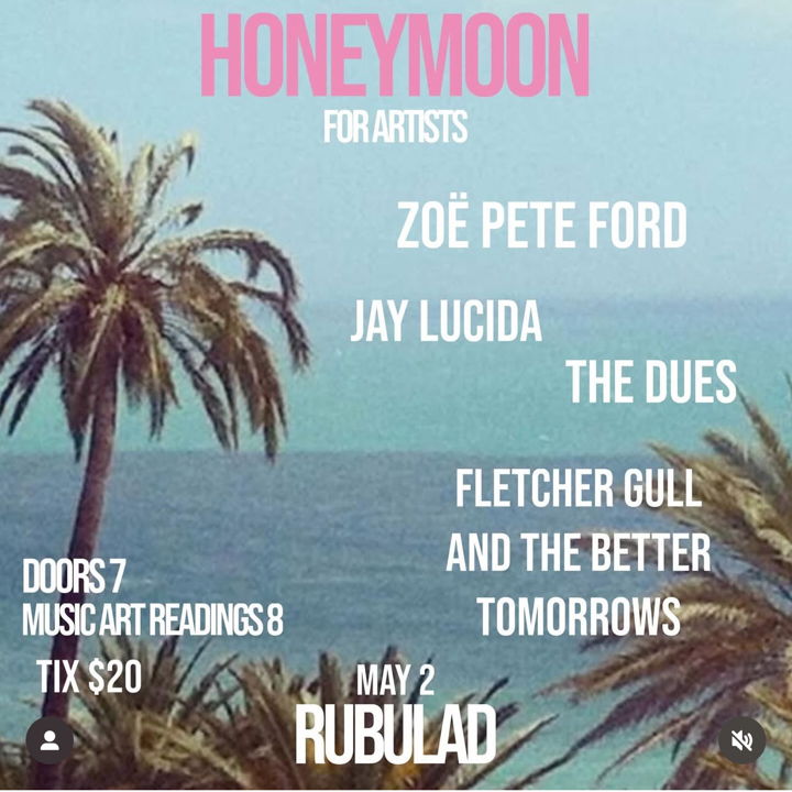 We’re back at World Famous Rubulad for another magical show. Artists, it’s our Honeymoon. Come for another evening of poetry, rock n roll and artwork