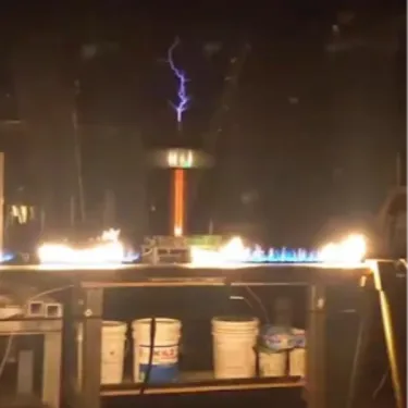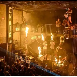 avec un orchestre de cuivres, des outils pneumatiques, des meuleuses, des fûts d'huile et un SPECTACLE SONORE à couper le
