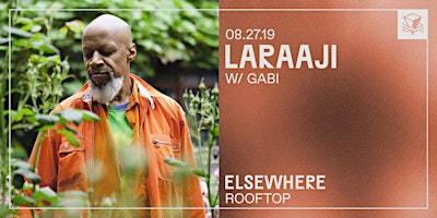 Due to weather, the Laraaji show has been rescheduled to Tuesday, 8/27/2019. All tickets will be honored at the rescheduled show. Tickets will be refunded through point of purchase upon request. Please request refunds for your tickets via Eventbrite if you cannot make it to the rescheduled date.☼ Performances└ Laraaji└└ GABI Doors: 6PMPerformances: 6PM - 10PMRoof deck closes at: 1AM---- ☼ About Elsewhere RooftopElsewhere Rooftop is a seasonal large outdoor bar and events space, offering a signature frozen drink menu, shows & parties, sunset DJ sessions, food pop-ups, film screenings, art happenings, and much more all summer. Full calendar at https://bit.ly/2UMjRb3 ☼ Hours*The Rooftop usually opens at 6PM Monday through Friday and 2PM Saturday & Sunday, but is only open when the following events are happening: https://bit.ly/2UMjRb3 — please do make sure to check the rooftop calendar before stopping by! ☼ Rain or Shine PolicyAll shows and events on the Rooftop are rain or shine! If the weather prevents us from carrying on, we will update customers via our website, Facebook, Instagram, Twitter, Eventbrite and Resident Advisor.  ☼ Safer Space PolicyELSEWHERE MAINTAINS A STRICT ZERO TOLERANCE POLICY FOR HARASSMENTElsewhere is intended to be a safe space to enjoy music, art, expression, and free play. Our staff are trained to remove individuals engaging in any form of sexual harassment, acts of aggression (including leering), racism, misogyny, transphobia, homophobia, religious bigotry, or hatred and discrimination of any kind. If you see or experience any unwanted attention, contact, bullying, harassment, or behavior of any kind that makes you uncomfortable, please speak out and notify our staff immediately.Please read our full policy at: https://bit.ly/2VxByad
