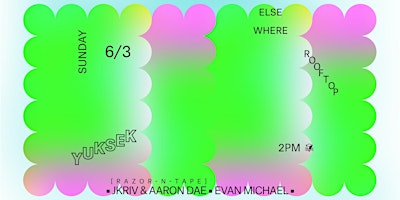 stick around for Kllo in Zone One, tickets will be available downstairs on the ground floor.if you've never been to our space, there is lots else to explore besides the rooftop! most nights are multi-room celebrations, featuring a very large cavernous warehouse hall, a smaller stage called zone one, and a small hideaway lounge called the loft tucked into the 2nd floor. make sure to check our calendar at www.elsewherebrooklyn.com/events to see what else is happening at elsewhere the night of your visit!--2PM - 10PM└ Yuksek└└ JKriv + Aaron Dae (Razor-N-Tape)└└└ Evan Michael