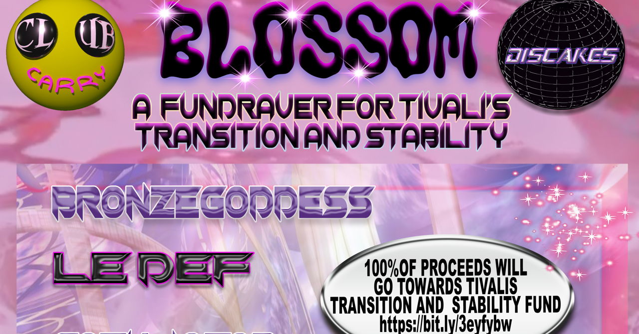 Welcome to Blossom. We are coming together to raise funds for our beloved community member Tivali, as she enters this next chapter of her existence. We are doing so in the form of a rave. Tivali is a community leader, internationally recognized poet and founder of Object.Defy an aspiring BK based black and trans publishing house. 100% of funds will go to Tivali's healing and transition fund.