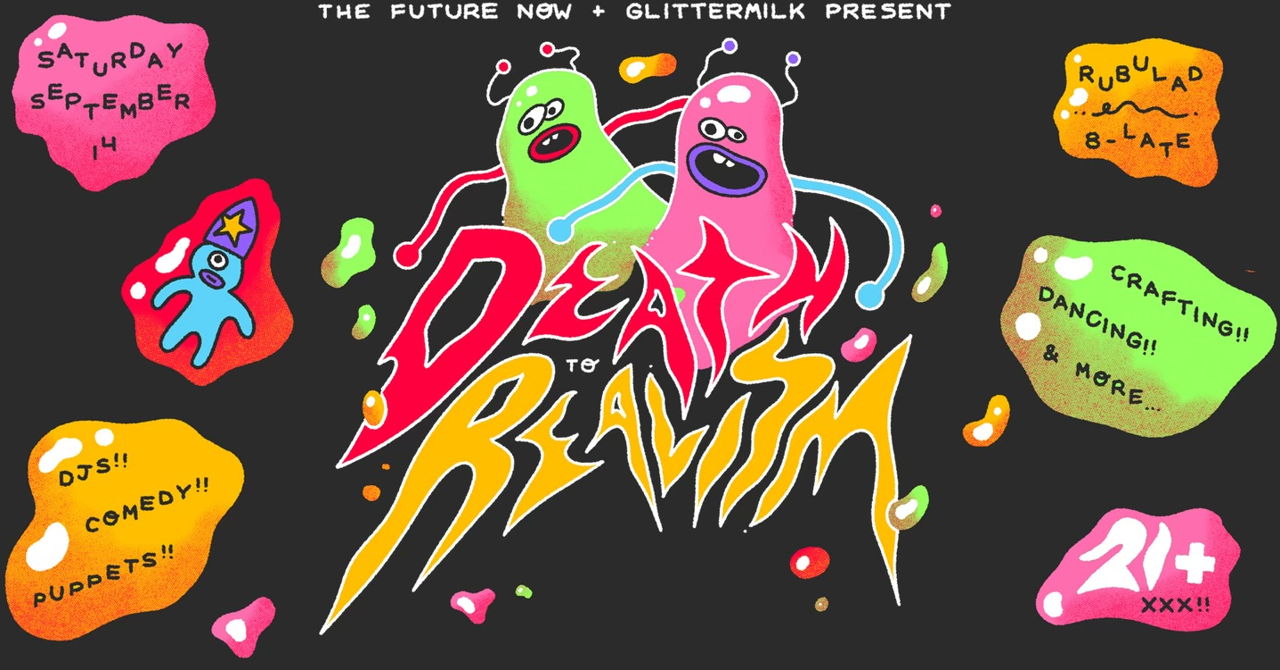 Glittermilk and The Future Now present DEATH TO REALISM - an art party extravaganza of your wildest silliest dreams!