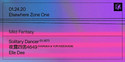 Mild Fantasy is bringing Solitary Dancer to play their first US performance ever at Zone One. Warming up we have 夜露四苦4649 the fresh duo from Bushwick & Elle Dee. Elsewhere is intended to be a safe space to enjoy music, art, expression, and free play. Elsewhere reserves the right to deny, remove and/or ban any customer deemed to be disrespecting our zero-tolerance harassment policy. Please read our full policy at: https://bit.ly/2VxByad All ticket sales are final, and Elsewhere does not offer refunds for any reason except event cancellation or reschedule. Opening performers, door times, and set times are subject to change without notice. All ticket holders must present a valid US government-issued ID or passport upon entering, and Elsewhere reserves the right to refuse entry without refund to anyone who does not have a valid ID or meet the event's age requirement. Please note that Elsewhere does not accept foreign IDs of any kind other than passports. Elsewhere does not guarantee the validity or use for admittance of tickets purchased via 3rd party resellers of any kind.