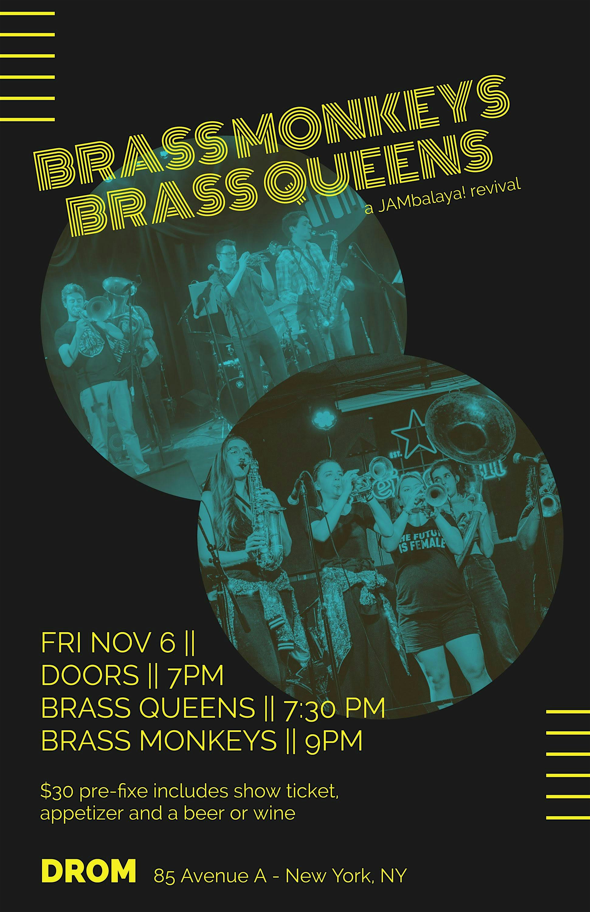 Special Dinner Package/ LS: Brass Monkeys, Brass Queens A JAMbalaya!Revival