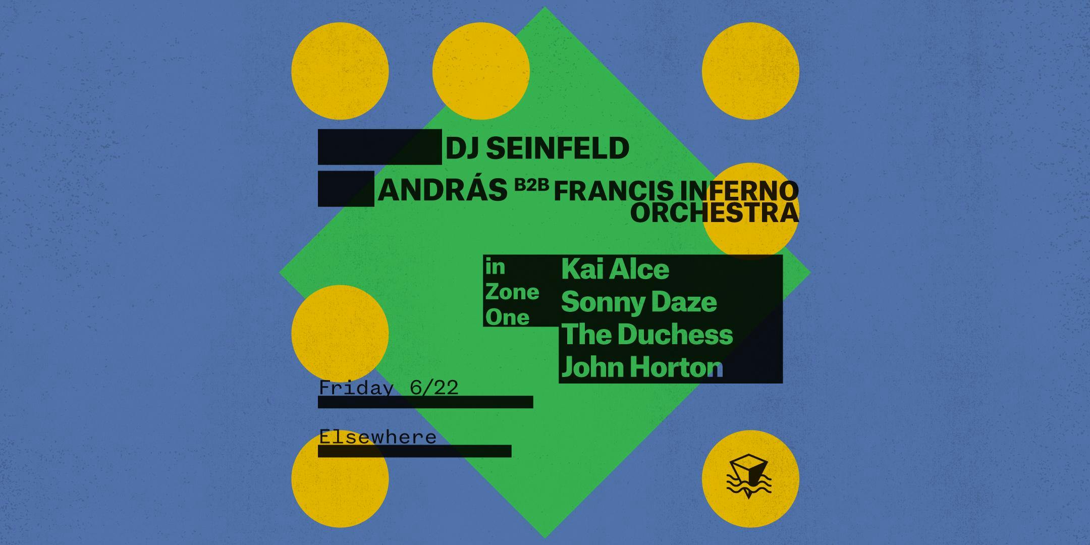 HALL└ DJ Seinfeld└ └ Andras B2B Francis Inferno Orchestra└└└ The DuchessZONE ONE└ Kai Alce└└ Sonny Daze└└└ John Horton