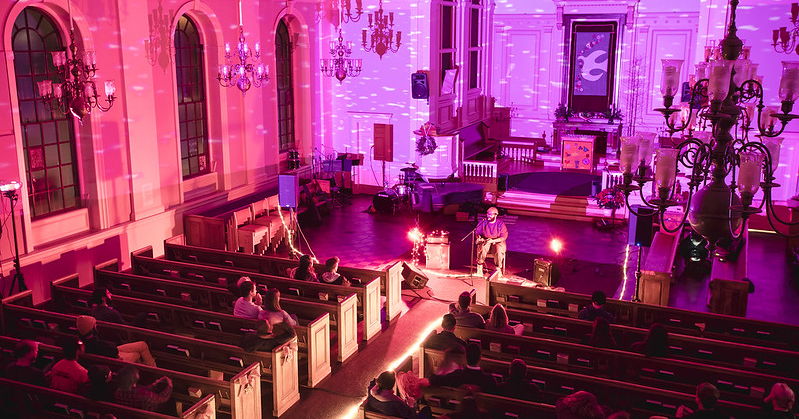 Each event features local artists and immersive projections on the walls of the church. Attendees are welcome to sit in pews and take in the experience. Brain Arts Organization, a community-based arts nonprofit, has been running this event for the past 5 years in this space and it is one of our most exceptionally unique shows! You can see more pictures form our last event here https://www.flickr.com/photos/brainartsorg/albums/72157712349009896/with/49270219076/.