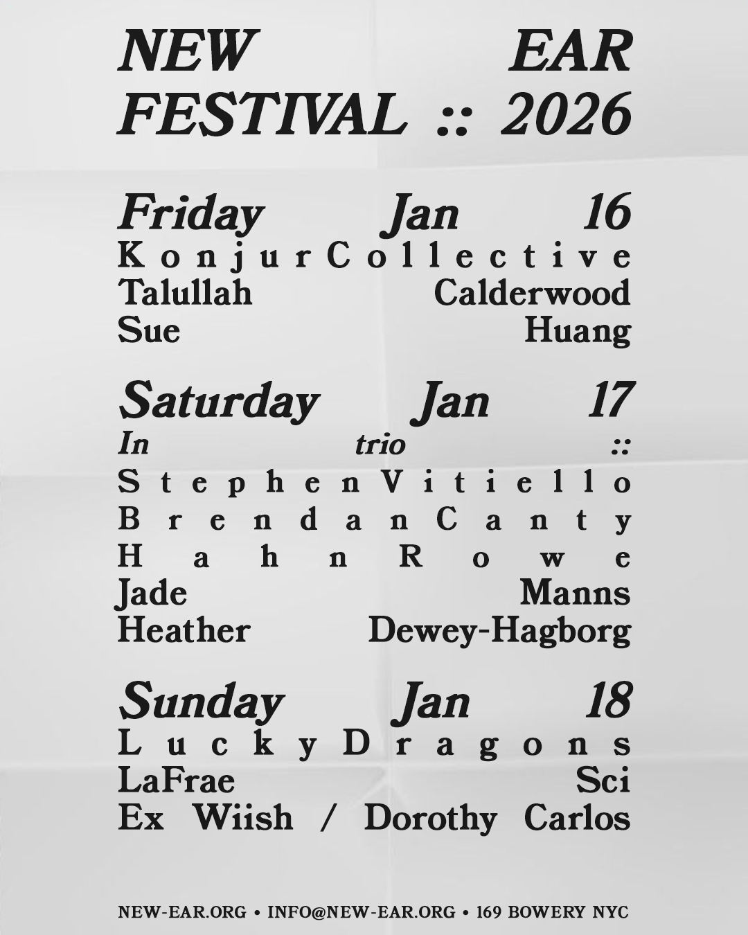 The annual New Ear Festival fulfills one of New Ear Inc.’s core missions—to help restore creative, experimental spirit on the ground floor level of downtown Manhattan. The festival showcases time-based art in all its forms—from sound installations and video screenings to storytelling and physical movement. Each evening will be live-streamed via Wave Farm / WGXC-90.7 FM.