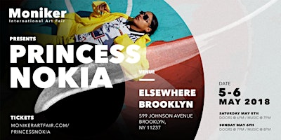 Moniker International Art Fair is pleased to announce it has partnered with Princess Nokia for two nights of intimate performances.Running on two evenings alongside the fair, the performances will celebrate Monikers’ New York debut. Early Bird tickets will be available on the Moniker website www.monikerartfair.com/princessnokia on Friday February 23, 2018. Tickets include free entry into the fair, May 3- 6, 2018. Tickets include free one-day entry into the fair, May 4- 6, 2018. Multiday passes and private view tickets are available on www.monikerartfair.com. Princess Nokia is a force to be reckoned with. Her album 1992 was regarded by Rolling Stone as one of the “15 Greatest Albums You Didn’t Hear in 2016”. After having sold out shows in Los Angeles and London she will be returning to her hometown, New York City. A stark individual, she blends tribal beats, with trip hop and R&B, creating a truly unique sound to match her confrontational and often humorous lyrics. “When thinking about who to partner with, Princess Nokia was the obvious choice. Not only is she a native New Yorker who embraces art and politics, she is also a strong female whose genre bending fits naturally with the ethos of the artists shown at Moniker. Her career mirrors that of the Urban Art and Street Art movements, starting underground and gaining wide recognition” says Tina Ziegler, Fair Director. Moniker sets itself apart from other art fairs through experimental presentations and immersive elements. Known for producing thematic fairs, its first stateside edition will bring the interactive atmosphere of the carnival to New York City. In addition to presentations by galleries, Moniker has commission site specific installation, connecting back to the idea that an art fair should be an active experience. With each fair, Moniker strives to expose a wider audience to new emerging and established artists working within the Urban Art and Street Art movements. The partnership with Princess Nokia furthers Moniker’s cause, providing a unique experience outside of the traditional art fair structure while connecting to a diverse group of culture enthusiasts.7PM - 12AM