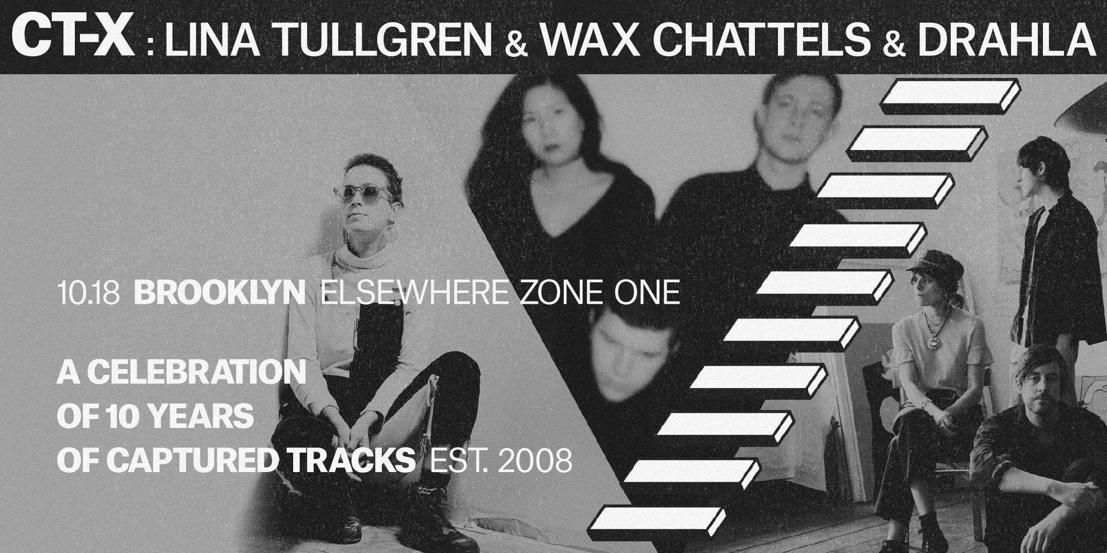 ON SALE: 8/17 @ 10AM ETWhen our 10-year anniversary was announced we received a lot of offers and ideas from promoters about how to celebrate. Ideas like a big festival in Brooklyn (like we did five years ago for CT5) and even a series of international festivals were bandied about. We wanted to do something more vibrant and more alive, something that had more of a focused view on what we're doing right now and where we're heading in the future. For CTX, we wanted to create an opportunity for people to see something new, so that maybe they can say one day, “I was there 10 years ago!” Without further ado, here’s our lineup for the CTX tour.//////////Lina Tullgren (NYC via Maine): A truly compelling — and at times even intimidating — performer, Tullgren learned music playing Swedish folk on the fiddle as a child but has morphed into something completely different and unique. While she fits the singer / songwriter mold, her music is much more intense and weighty than what people think of as the traditional singer/ songwriter — replacing the airiness of, say, Joni Mitchell with the power and force of Dirty Three. She's already light years more mature than her years as a performer, both live and in the studio. That two-threat attack is evident on her first album Won and on stage where her presence commands your attention.//////////Wax Chattels (Auckland, New Zealand): Wax Chattels are a band you absolutely need to see live. When I saw them play in Auckland for the first time I was completely blown away. The minimalist precision, sheer volume and sonic power was something I'd rarely seen in a live band. As Matt Kosloff from Pissed Jeans said on his site Yellowgreenred, "\[Wax Chattels are\] just absolutely pummeling and unfathomably tight, with inventive songs, memorable hooks and a cool manic intensity, each member committed to playing their instrument faster than legal limits… I worry what my life will be like if I don’t get to witness them live again soon – I’m still recovering."//////////Drahla (Leeds, UK): It's rare for a band to have a clear aesthetic and sense of purpose right from the get-go, but Drahla has nailed it right off the bat. Luciel Brown’s spoken drawl is both mesmerizing and unnerving. The result of these vocals combined with the steady unrelenting wall of sound from Rob Riggs on bass, and Mike Ainsley on drums, is truly magnetic. The Captured Tracks team and everyone who attends the CTX shows will be seeing them for the first time, which I think is so great. And judging from the crowd reactions I’ve seen on video and the strength of their music, I can guarantee it won't be our last time seeing them.//////////It may be a bit wild to send these particular artists out into the vast North American landscape with hope that fans of Captured Tracks will go to the shows to find out more about what we're doing, but that's always been the culture and vision of the label. We're always trying new things, signing relatively (or completely) unknown artists because we’re passionate about their music and want to be a part of their success. If you're in a band and want to be on the label: GO SEE THIS TOUR. You’ll get a sense of the type of artists we're looking for, be able to pick up some of the unique and exclusive merch that we're making for it, and I also guarantee that you’ll enjoy the show. Oh, and we’re adding a "Demo Drop Box" to the merch table — if you leave a card with a Bandcamp or SoundCloud link, we'll listen to it. Who knows, maybe you'll be touring CT15…