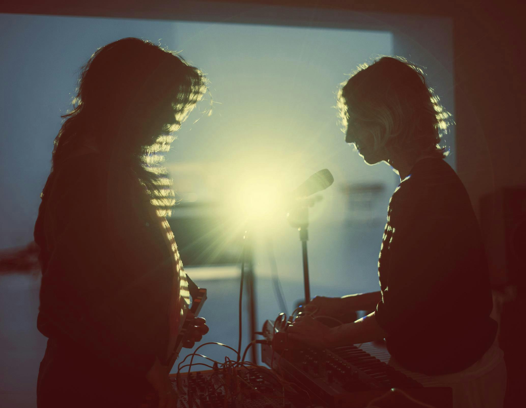 The sonic field is an endless grid of possibilities. Using electronic instruments makes the options even more limitless. The record collection on the shelves in our living room reflects some of the beacons that illuminated our way. It's stacked with art rock heroes, new wave romantics, r&b thumpers, and radio pop. (It might be said that we are fairly poor imitators, moving around in the dark and inventing weird new shapes.) We divided the tasks of making the album between us pretty much according the differences in how we dream at night. Khaela dreams about people and conversations and juxtaposed feelings: she wrote the lyrics and melodies and many of the compositions. Melissa dreams of being a beam of light bouncing off a Ferrari; anything that gave the songs dimension (arrangement, engineering, synth programming, sample perfecting, half of the composing) was done by her. A lot of the sounds that we used in the album are samples of acoustic instruments that we processed back into electronic elements. We produced this album ourselves in and around New York City, and we would travel around with our portable rig, sampling performances from friends and acquaintances, running our sounds through other people’s gear like taking it to an audio spa. What we didn't have we borrowed or found, what we didn't know how to do we learned. Making this album was an odyssey of experimentation. These songs trace the arc of our somersault into the unknown, holding hands, going backwards through the air, watching to see where we land.
