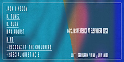 Sweatshop w/ Jada Kingdom, DJ Tunez, DJ Buka, Max August, M!NT, Redddaz ft. The Colluders, ZEEMUFFIN, MINA & Uninamise @ Elsewhere (Hall)