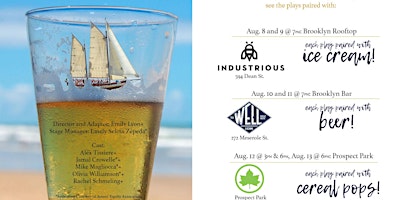 Each “taste" of the bard is served with a treat! On August 8th & 9th (rooftop performances at Industrious Brooklyn), plays will be paired with Prosecco and ice cream. On August 10th & 11th (outdoor stage performances at The Well), plays will be paired with beer. August 12th & 13th, the plays will be served with cereal pops (Prospect Park).