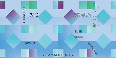 Please Note: Advance tickets are now sold out. Tickets WILL be available at the door, space permitting.└ Nicola Cruz (DJ Set)└└ Ela Minus (DJ Set)Doors: 5PMHappy hour: 5PM – 7PM ($4 beers, $4 wells)Performances: 6PM - 10PMRoof closes: 2AM