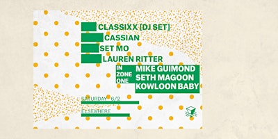 heads up y'all: this summer season, the Elsewhere Rooftop will be open all night on weekends space-permitting, so grab a frozen drink with a view of the skyline when you need a breather! if you've never been to our space, there is lots else to explore too! our parties are multi-room celebrations, featuring a very large cavernous warehouse hall and a cozy dance floor in the side room, plus a small hideaway lounge tucked into the 2nd floor. make sure to wander!HALL└ Classixx (DJ Set)└ └ Cassian└└└ Set Mo└└└└ Lauren RitterZONE ONE└ Mike Guimond└└ Seth Magoon└└└ Kowloon Baby