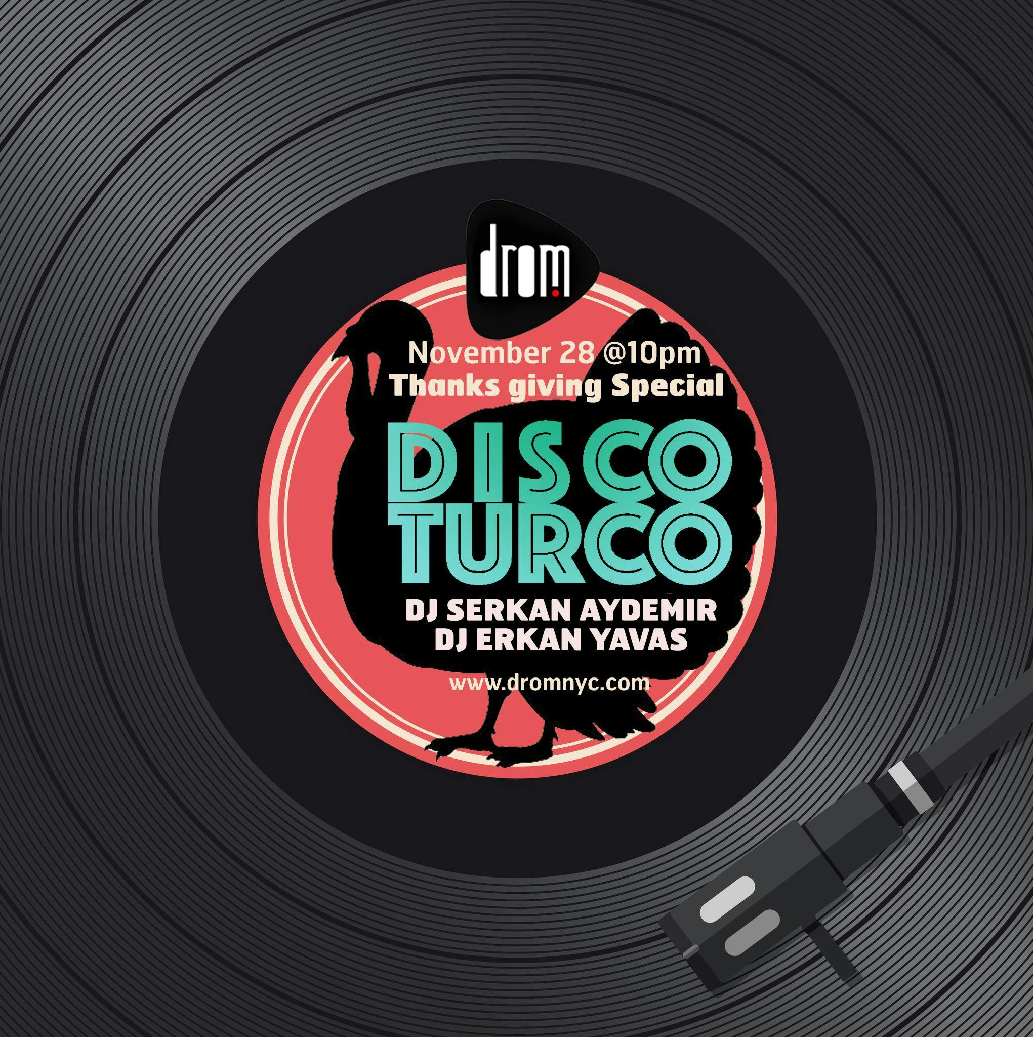 Disco Turco Thanksgiving Special at DROM in the East Village, NYC on Thursday, November 28th at 10 pm!