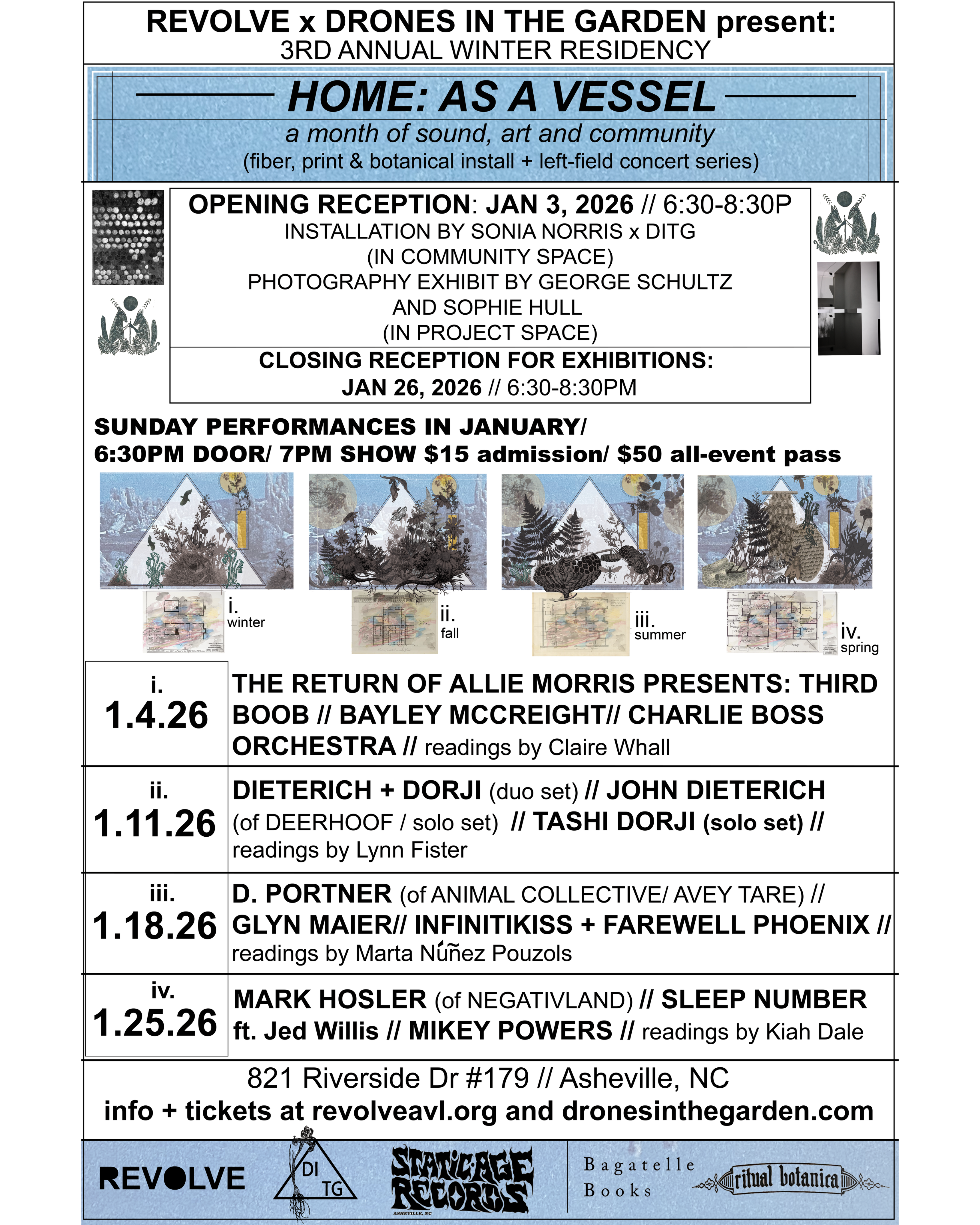 This PASS allows entry to all ticketed >HOME: AS A VESSEL< events during the month of JANUARY.