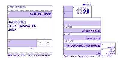 FULL LINE-UP: ACID ECLIPSE PRESENTS: JACIDOREX, TONY RAINWATER, JAK3