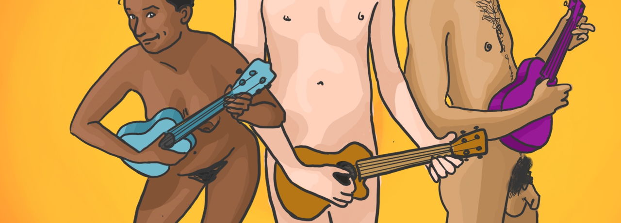 Bring your ukulele--we all have one laying around for some reason--and join Adam as we pluck out whimsical approximations of our favorite songs. Beginners are welcome; we all started somewhere! This is all about having fun and making music together (while we happen to be naked). Other instruments are welcome, as long as they are suitable for accompanying the ukulele.