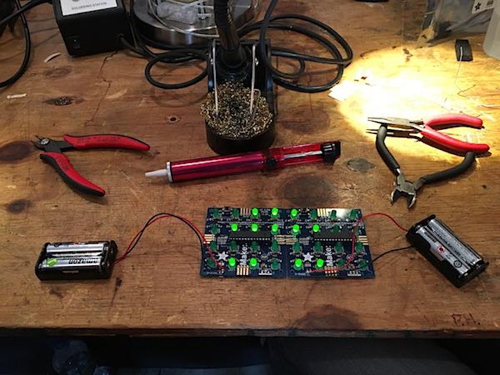 Soldering is one of the most important skills you'll need for working with electronics. Come join us for an introductory through-hole soldering workshop. Soldering enables you to create sturdy connections between electrical components.In this hands-on workshop, you'll learn how to use a soldering iron safely and effectively, and get plenty of practice with both soldering and desoldering techniques. We'll be soldering up some Game of Life kits - LED tiles that generate nifty animations.No previous experience is required, making this introductory workshop a great choice for anyone who's curious about getting started with hardware tinkering! All materials will be provided.