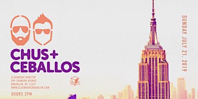 **This event will not accept the Saturdays + Sundays RSVP for free entry before 4PM listed on the Elsewhere rooftop page☼ Performances└ Chus & Ceballos Doors: 2PMPerformances: 2PM - 10PMRoof deck closes at: 1AM---- ☼ About Elsewhere RooftopElsewhere Rooftop is a seasonal large outdoor bar and events space, offering a signature frozen drink menu, shows & parties, sunset DJ sessions, food pop-ups, film screenings, art happenings, and much more all summer. Full calendar at https://bit.ly/2UMjRb3 ☼ Hours*The Rooftop usually opens at 6PM Monday through Friday and 2PM Saturday & Sunday, but is only open when the following events are happening: https://bit.ly/2UMjRb3 — please do make sure to check the rooftop calendar before stopping by! ☼ FoodFood is provided every Friday through Sunday this season by our good friends at Holy Ground BBQ, Brooklyn's tastiest BBQ pop-up. You can view the full menu here: https://bit.ly/2WHCB8J ☼ Rain or Shine PolicyAll shows and events on the Rooftop are rain or shine! If the weather prevents us from carrying on, we will update customers via our website, Facebook, Instagram, Twitter, Eventbrite and Resident Advisor.  ☼ Safer Space PolicyELSEWHERE MAINTAINS A STRICT ZERO TOLERANCE POLICY FOR HARASSMENTElsewhere is intended to be a safe space to enjoy music, art, expression, and free play. Our staff are trained to remove individuals engaging in any form of sexual harassment, acts of aggression (including leering), racism, misogyny, transphobia, homophobia, religious bigotry, or hatred and discrimination of any kind. If you see or experience any unwanted attention, contact, bullying, harassment, or behavior of any kind that makes you uncomfortable, please speak out and notify our staff immediately.Please read our full policy at: https://bit.ly/2VxByad