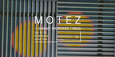 heads up y'all: this summer season, the Elsewhere Rooftop will be open all night on weekends space-permitting, so grab a frozen drink with a view of the skyline when you need a breather! if you've never been to our space, there is lots else to explore too! our parties are multi-room celebrations, featuring a very large cavernous warehouse hall and a cozy dance floor in the side room, plus a small hideaway lounge tucked into the 2nd floor. make sure to wander!-- 11PM - 4AMZONE ONE└ Motez (DJ Set)└└ Sammy Bananas└└└ MDG