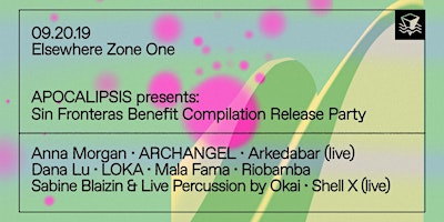 APOCALIPSIS Presents: Sin Fronteras Benefit Compilation Release Party w/ Anna Morgan, ARCHANGEL, Arkedabar (Live), Dana Lu, LOKA, Mala Fama, Riobamba, Sabine Blaizin & Live Percussion by Okai and more @ Elsewhere (Zone One)