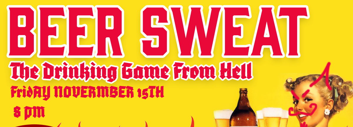 BEER SWEAT is a live drinking game comedy show surmised by the Dark Lord himself. Each comedian that performs will offer a drinking rule to be observed by both the audience and the other comedians for the remainder of the night.