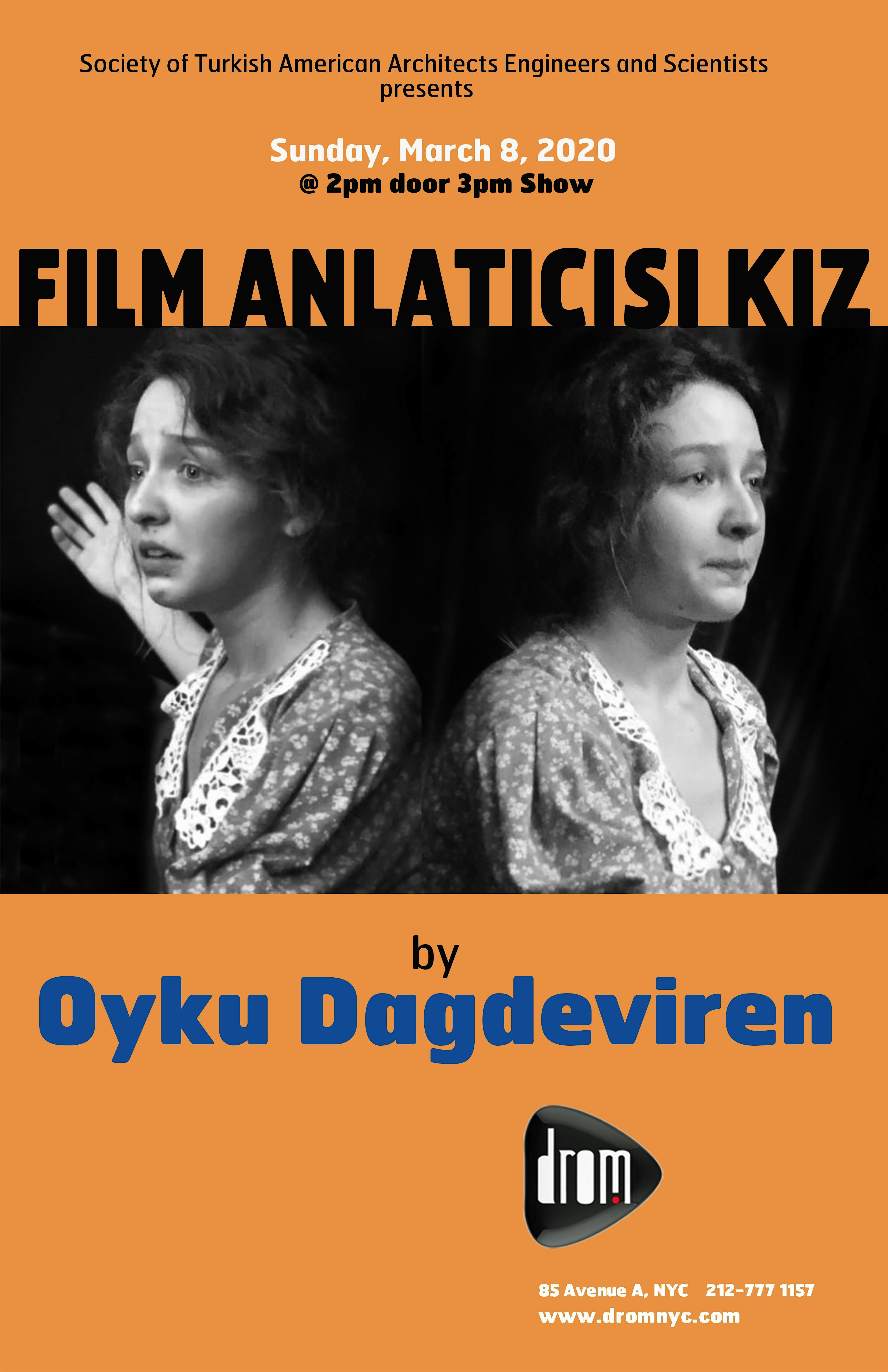 Film Anlatıcısı Kız is a theatrical performance showcasing the newly discovered talent, Öykü Dağdeviren from Turkey, in an adaptation of the novel written by Hernan Rivera Letelier.