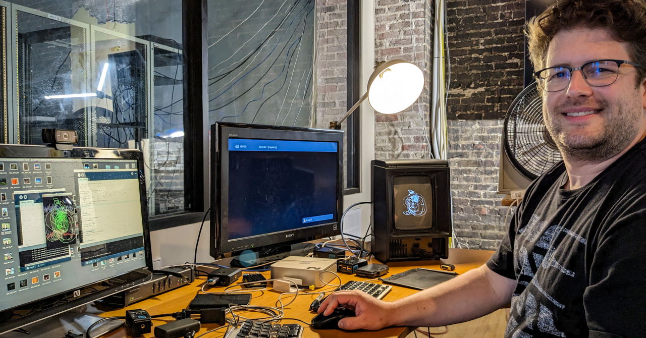Nick Fox-Gieg is an experimental animator in Toronto. Nick’s ultimate goal is to make practical, appealing, open-source, and artist-friendly tools for video installations using large calibrated arrays of cameras, depth cameras, SBCs (Single Board Computers, like the Raspberry Pi or Nvidia Jetson), and recycled desktop computers.