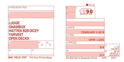 LINE-UP: LUDGE, GNAWBOX, HATTRIX b2b DICEY, YARVEST, OPEN DECKS