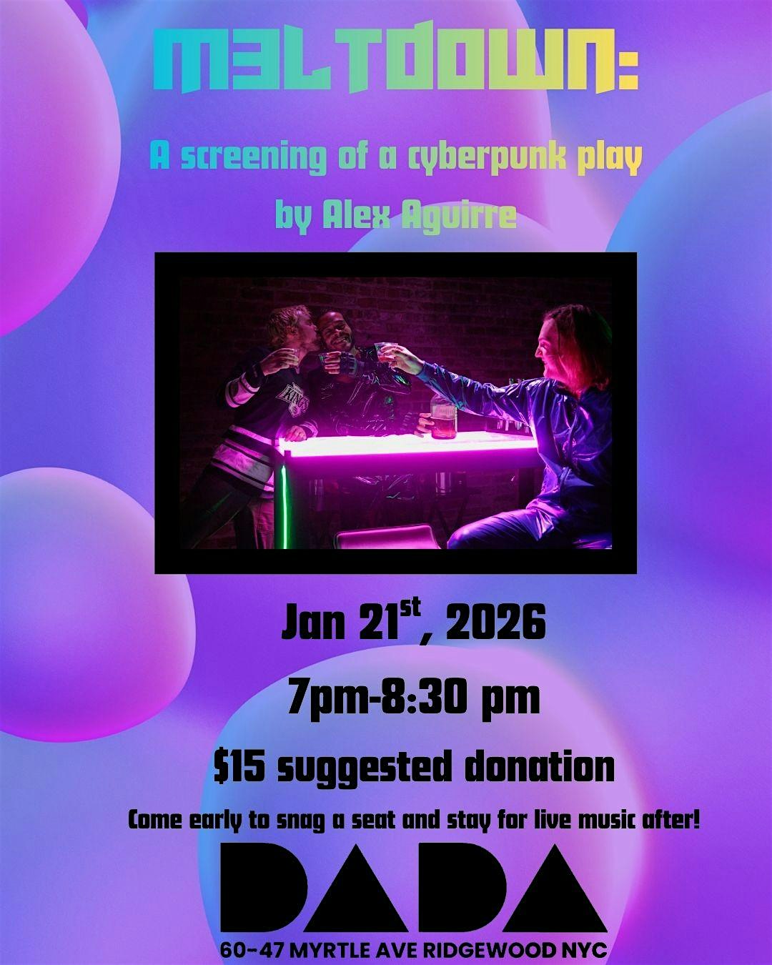 Join us for a special screening of M3LTD0WN, an interdimensional cyberpunk comedy influenced by Y2K aesthetics and 90s rave culture.