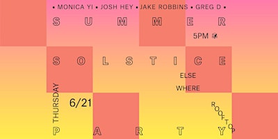 └ Monica Yi (Paxico)└└ Josh Hey (Paxico)└└└ Jake Robbins (Paxico)└└└└ Greg D (About Disco Records) Doors: 5PMHappy hour: 5PM – 7PM ($4 beers, $4 wells)Performances: 5PM - 10PMRoof closes: 1AM