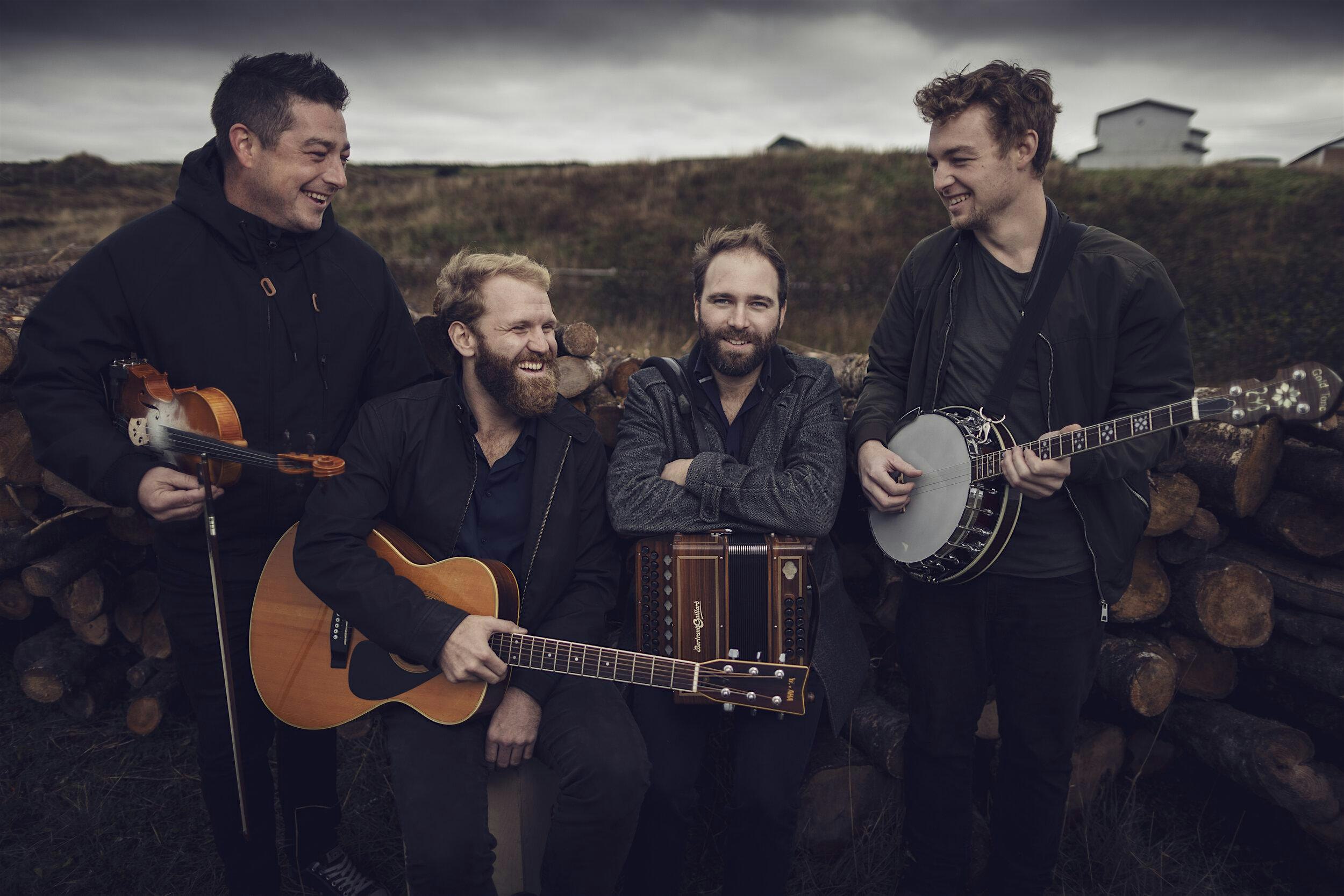 2021 JUNO Award Nominees, Rum Ragged, take a bold approach to the distinct folk music of their home, the Eastern Canadian island of Newfoundland. With a reverence for their roots and a creative, contemporary edge, this young band has quickly become known as the finest performers of their great, living, musical tradition. Boasting bouzouki, fiddle, bodhran, banjo, guitar, and button accordion, these new champions of East Coast music enliven and enlighten audiences with their signature brand of Newfoundland folk. Always honest, thought-provoking, and often humorous, it’s Rum Ragged’s live show that makes them a fast favourite with any audience. Their combination of striking vocal harmonies, staggering musicianship, and captivating storytelling gives concert-goers an experience they won’t soon forget. Since their inception in 2016, Rum Ragged has maintained a rigorous tour schedule, performing at some of the world’s premier folk, celtic and roots venues all while managing to record four acclaimed, award-winning studio albums. Rum Ragged is not your run-of-the-mill folk band, they are the genuine article.