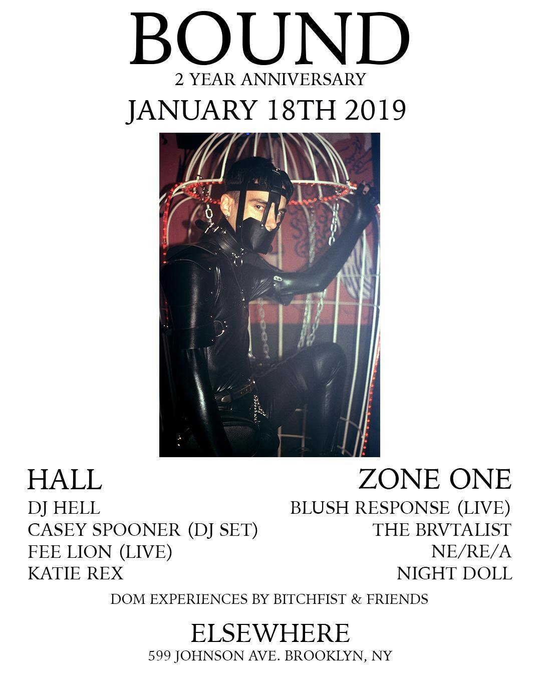 BOUND 2 Year Anniversary w/ DJ Hell , Casey Spooner DJ set, Blush Response (live), Fee Lion (live), The Brvtalist, Ne/Re/A, Katie Rex & Night Doll @ Elsewhere