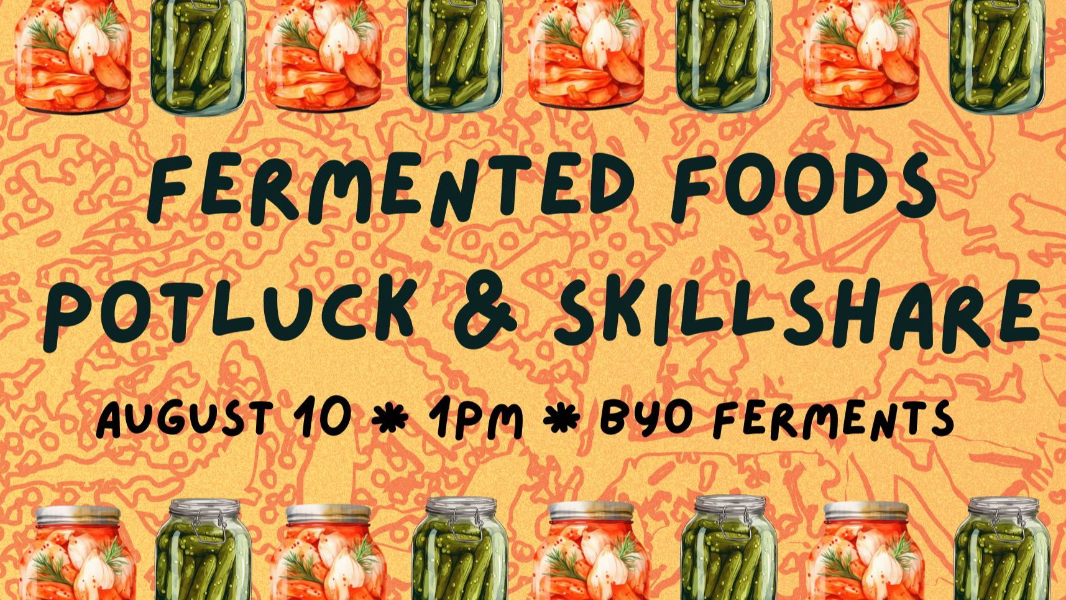 A community potluck event for home fermenters to share their favorite brews, batches, and recipes. Have an extra jar of homemade kimchi sitting in the back of the fridge? A loaf of sourdough? We'll trade recipes, swap tips, and sample one another's ferments! All levels of experience welcome, but please bring something for everyone to try. Email jasperswartz.m@gmail.com with any questions