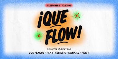Due to circumstances outside of our control, we regret to inform you that the Que Flow party has been cancelled. Tickets will be refunded through point of purchase within 30 days of the cancellation. To read more about the community health precautions we’ll be taking and for real-time updates about upcoming programming, please visit http://bit.ly/elsewherehealt