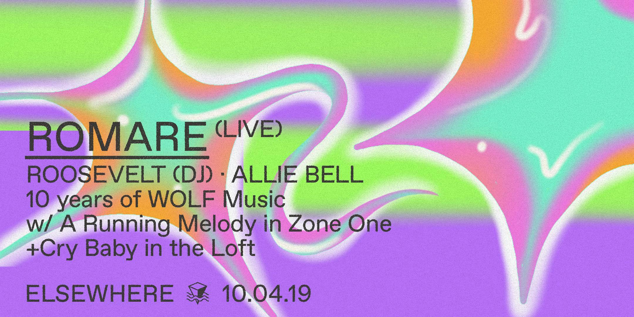 Romare (Live), Roosevelt (DJ), Allie Bell, 10 Years of WOLF Music w/ A Running Melody & Cry Baby @ Elsewhere