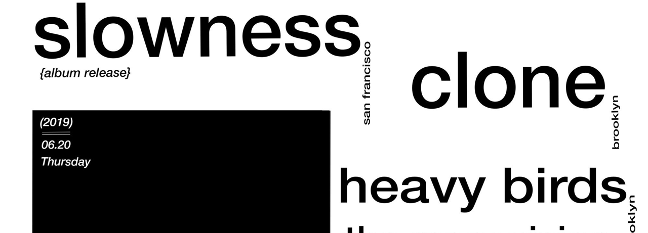 Come down for the record release party for SF Based dreamgazers Slowness, and the psychedelic sounds of Heavy Birds, MaryVision, and Clone! Starts at 8pm.