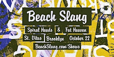 TONIGHT! TUES 10/22. Bar opens at 6. Doors at 7. Tickets available at doors. Set times: 745 Fat Heaven 830 Spiral Heads 930 Beach Slang