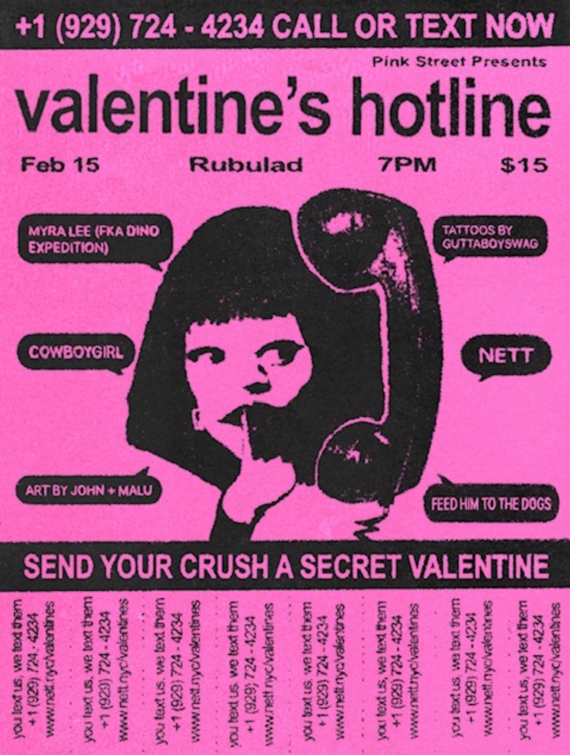 Join us at Rubalad Sunday February 15th for a special Post Valentines day party with Brooklyn bands @nett.nyc, @Myraleeband (fka Dino Expedition), @cowboygirlband, and new project “Feed Him To The Dogs” from Joey Machina and Aman Hanspal @joeymachinaera @swwan.gardenn.