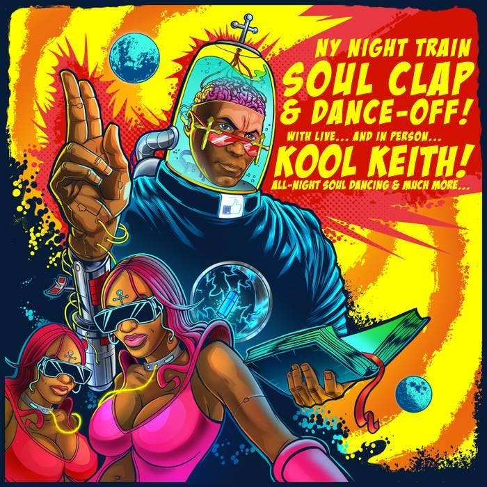 thee CLAP does it again! every month we not only keep you dancing 'til the wee hours but we also present to you the best music of all time live and in person! january the world's favorite soul party returned and kicked off its monthly residency at its new ELSEWHERE home with live DAVID JOHANSEN playing a Dolled up rock'n'roll set, and february LA LUZ and MYSTERY LIGHTS turned it on, and march SUN RA ARKESTRA and the CONTORTIONS got weird, and april JOE BATAAN and the BARRIO BOYS +1 turned on the heat, and in may.... MAY 19 to be exact, Jonathan Toubin / New York Night Train andElsewhere are thrilled to present one of the most most creative, unique, and iconic figures in hip hop history at our dance party... thee one and only.... KOOL KEITH aka DR OCTAGON aka DR DOOM aka BLACK ELVIS aka DR ULTRA aka CRAZY LOU aka POPPA LARGE aka KEITH KORG aka PLATINUM RICH aka an infinity of cool and unusual in one entertainer... KOOL KEITH! can you believe it?The world's most popular and prolific soul party, thee one and only New York Night Train SOUL CLAP & DANCE-OFF, returns to monthly THIRD SATURDAYS after a couple of years on the road! Reuniting with Glasslands' proprietors at their new happening Bushwick mega-venue / party lodge Elsewhere, every month's shindig is a new unmissable nightlife spectacle with two rooms vibrating to nonstop sound and vision! Cool and unusual live music from the best bands of all time early and dancing to the word's most exciting and exquisite soul vinyl 'til late! CATCH THEE CLAP!