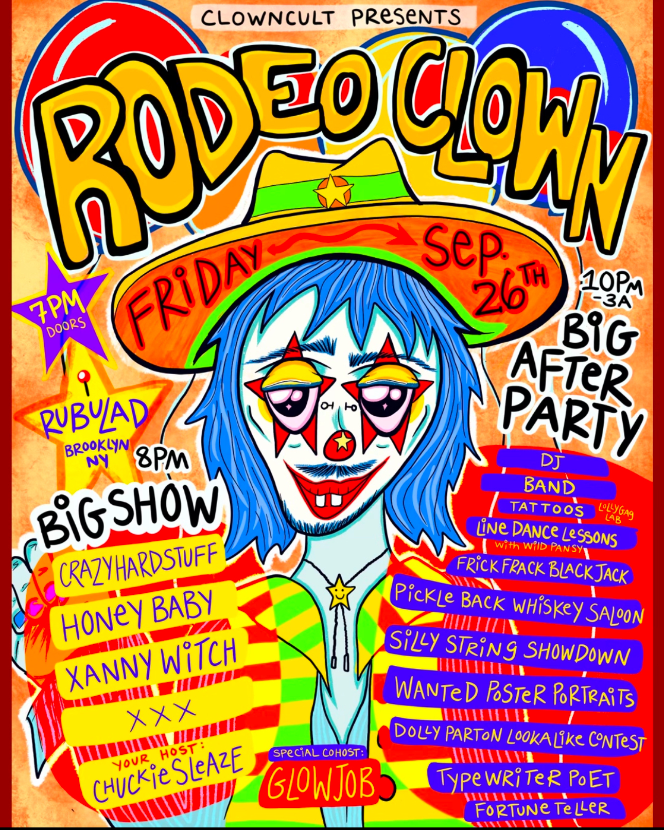 Yee Haw! CLOWN CULT is going to the rodeo this September! Join us for an old west immersive variety show featuring the hottest clowns and cowboys in this here town. Then, stay at the saloon for a real kicker of an after party with line dance lessons, Frick Frack Blackjack, and a whole herd of other games, activities, shock, awe, and spectacle!