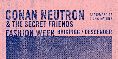 Conan Neutron and The Secret Friends come in for a heavy afternoon of riffs with Fashion week, Bbigpigg and Descender.
