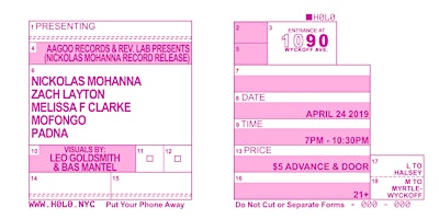 FULL LINE-UP: NICKOLAS MOHANNA, ZACH LAYTON, MELISSA F CLARKE, MOFONGO, PADNA; WITH VISUALS BY LEO GOLDSMITH & BAS MANTEL