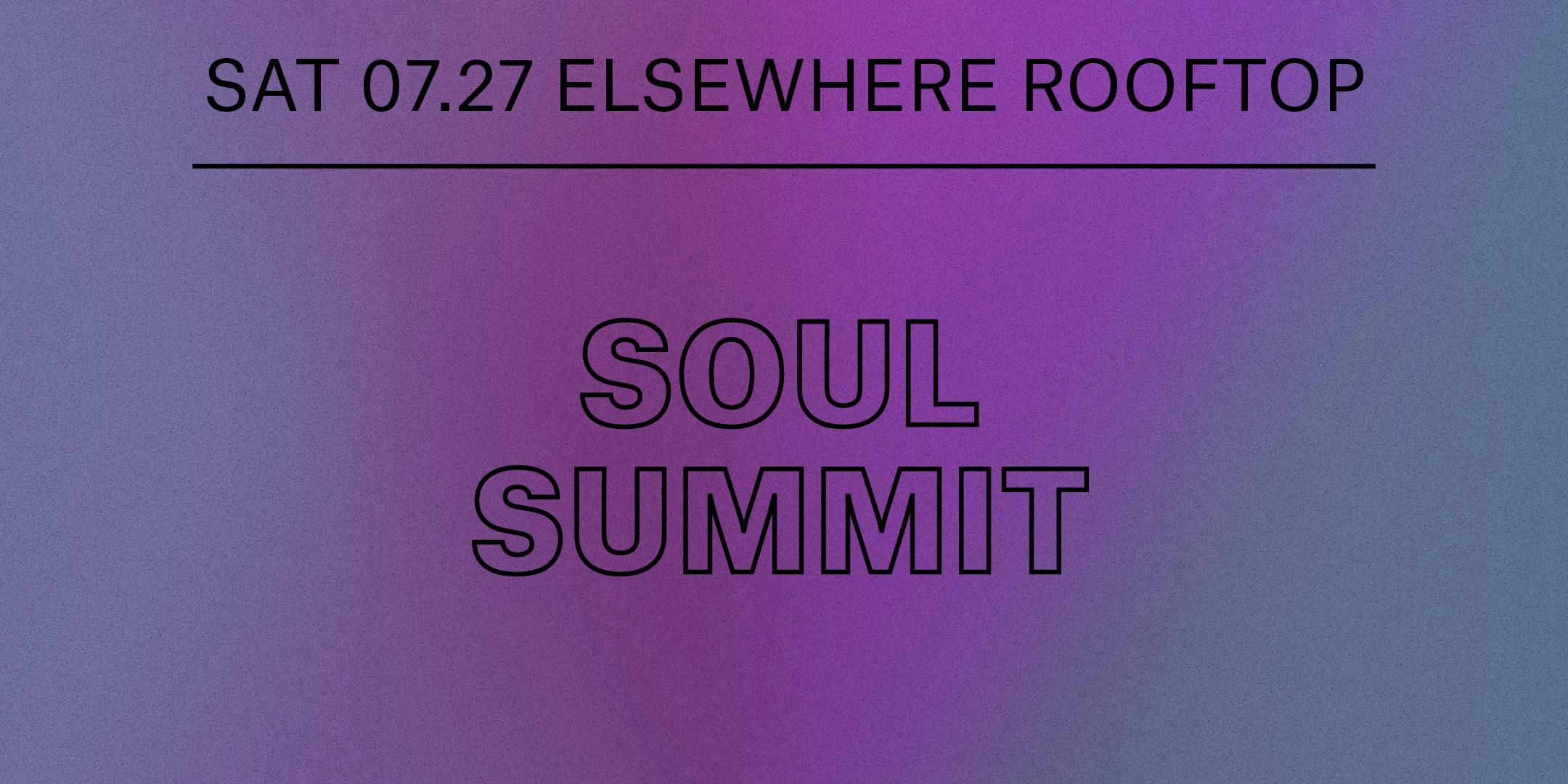 ADVANCE TICKETS ARE NOW SOLD OUT, PLENTY OF TICKETS WILL BE AVAILABLE AT THE DOOR, PLEASE ARRIVE EARLY FOR YOUR BEST CHANCE TO GRAB THEM☼ PerformancesSoul Summit Doors: 2PMPerformances: 2PM - 10PMRoof deck closes at: 4AMstick around for Pixx etc... tickets will be available downstairs on the ground floor. there’s always lots else to explore besides the rooftop! most nights are multi-room celebrations, featuring a dynamic lineup of local and international talent in the hall and zone one. if you haven’t noticed already, our loft tucked into the 2nd floor now has its own dj booth and hosts free parties throughout the week. make sure to check our calendar at www.elsewherebrooklyn.com/events to see what else is happening at elsewhere the night of your visit! ---- ☼ About Elsewhere RooftopElsewhere Rooftop is a seasonal large outdoor bar and events space, offering a signature frozen drink menu, shows & parties, sunset DJ sessions, food pop-ups, film screenings, art happenings, and much more all summer. Full calendar at https://bit.ly/2UMjRb3 ☼ Hours*The Rooftop usually opens at 6PM Monday through Friday and 2PM Saturday & Sunday, but is only open when the following events are happening: https://bit.ly/2UMjRb3 — please do make sure to check the rooftop calendar before stopping by! ☼ FoodFood is provided every Friday through Sunday this season by our good friends at Holy Ground BBQ, Brooklyn's tastiest BBQ pop-up. You can view the full menu here: https://bit.ly/2WHCB8J ☼ Rain or Shine PolicyAll shows and events on the Rooftop are rain or shine! If the weather prevents us from carrying on, we will update customers via our website, Facebook, Instagram, Twitter, Eventbrite and Resident Advisor.  ☼ Safer Space PolicyELSEWHERE MAINTAINS A STRICT ZERO TOLERANCE POLICY FOR HARASSMENTElsewhere is intended to be a safe space to enjoy music, art, expression, and free play. Our staff are trained to remove individuals engaging in any form of sexual harassment, acts of aggression (including leering), racism, misogyny, transphobia, homophobia, religious bigotry, or hatred and discrimination of any kind. If you see or experience any unwanted attention, contact, bullying, harassment, or behavior of any kind that makes you uncomfortable, please speak out and notify our staff immediately.Please read our full policy at: https://bit.ly/2VxByad
